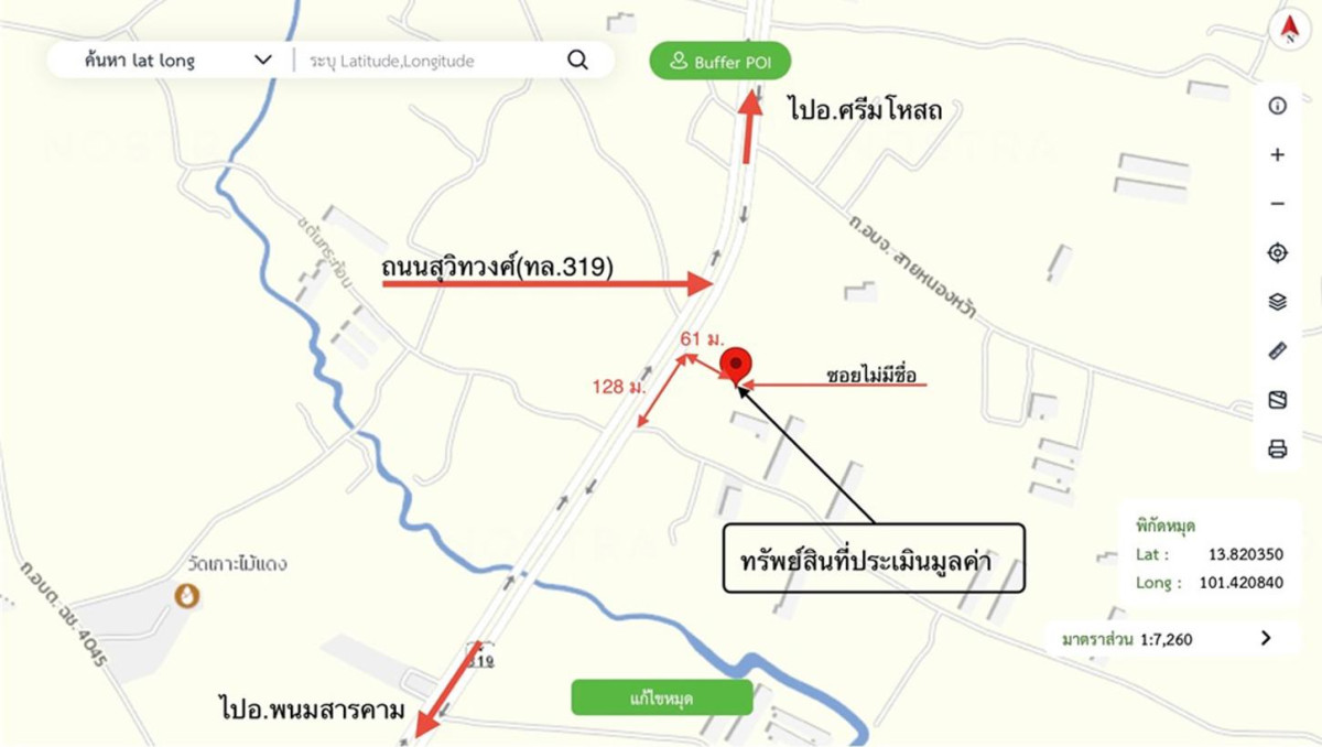ศูนย์ข้อมูลฯ ได้ทำการตรวจสอบตำแหน่งที่ตั้งทรัพย์บนแผนที่ที่ปรากฎอยู่บนเว็บไซต์ โดยอาศัยข้อมูลจากแหล่งข้อมูลต่างๆ ที่เชื่อถือได้ เพื่อให้ตำแหน่งทรัพย์บนแผนที่ ใช้อ้างอิงท่านไปยังที่ตั้งของทรัพย์นั้นๆ โดยประมาณ ทั้งนี้ศูนย์ข้อมูลฯ ไม่สามารถยืนยันความถูกต้องของตำแหน่งทรัพย์ได้ ดังนั้น ทางศูนย์ข้อมูลฯ ขอสงวนสิทธิ์ไม่รับผิดชอบต่อข้อผิดพลาดทางตำแหน่งทรัพย์ที่เกิดขึ้นบนแผนที่ ผู้นำข้อมูลไปใช้พึงใช้วิจารณญาณและตรวจสอบตามความเหมาะสม