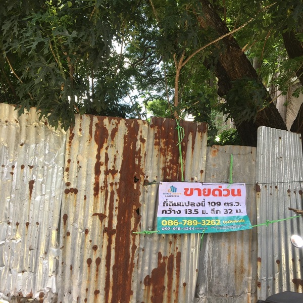 - ที่ดินรูปสี่เหลี่ยมผืนผ้า เนื้อที่ 109 ตารางวา หน้ากว้าง 13.5 เมตร ลึก 32 เมตร