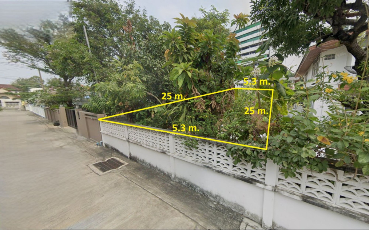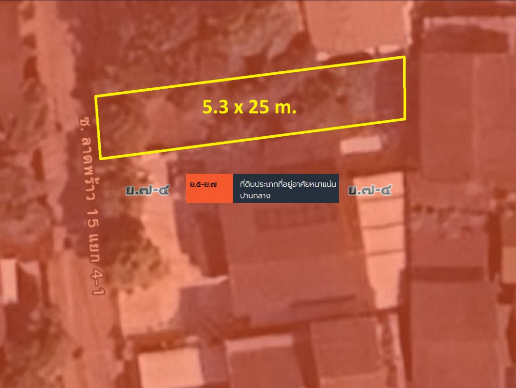 - ที่ดินเป็นรูปสี่เหลี่ยมผืนผ้า หน้ากว้าง 5.3 เมตร ลึก 25 เมตร ใช้ประโยชน์ได้เต็มพื้นที่