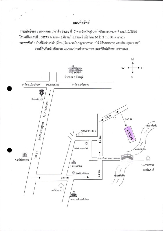 หมายเหตุ*: บางส่วนปลูกต้นยางพาราประมาณ 7 ไร่ ที่เหลือเป็นที่ดินว่างเปล่า