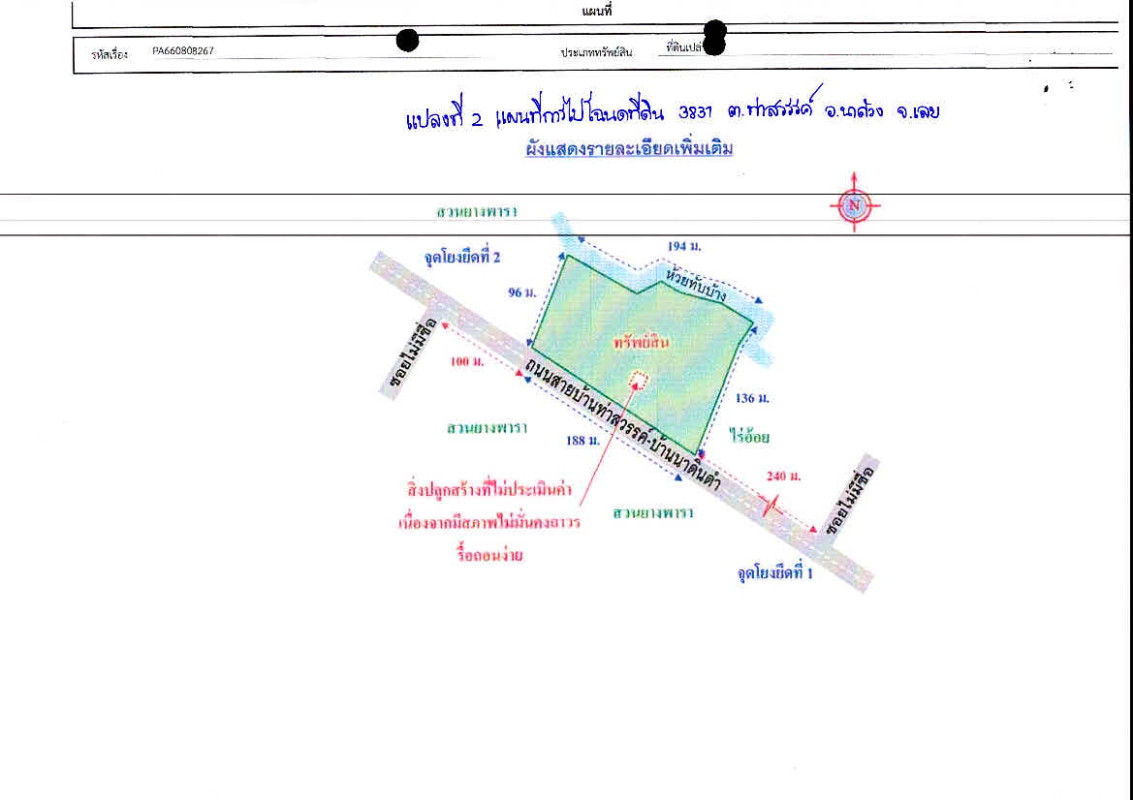 หมายเหตุ*: มีสิ่งปลูกสร้างปลูกอยู่แต่ไม่ได้ยึดไว้