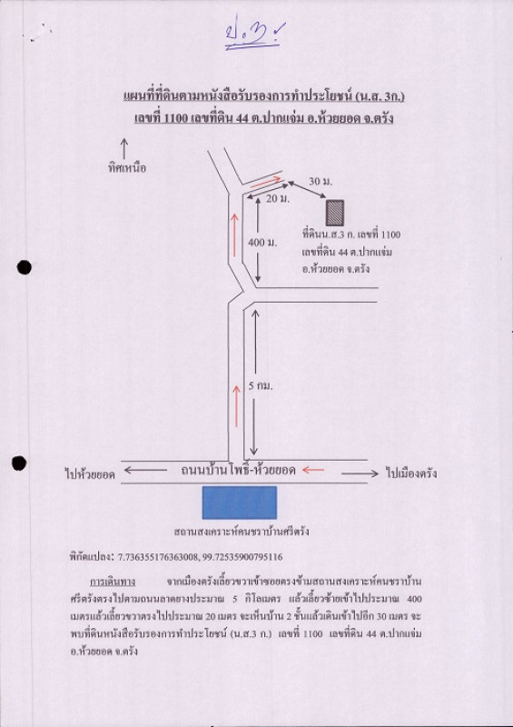 หมายเหตุ*: ขายรวมกับที่ดิน น.ส. 3 ก เลขที่ 1101, ราคาประเมินรวม 506,400.-บาท
