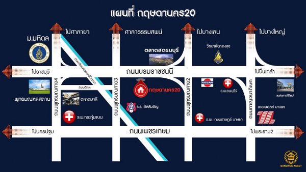 - ใกล้ห้างสรรพสินค้าเซ็นทรัล ปิ่นเกล้า, เดอะพาซิโอพาร์ค กาญจนาภิเษก, เดอะมอลล์ บางแค