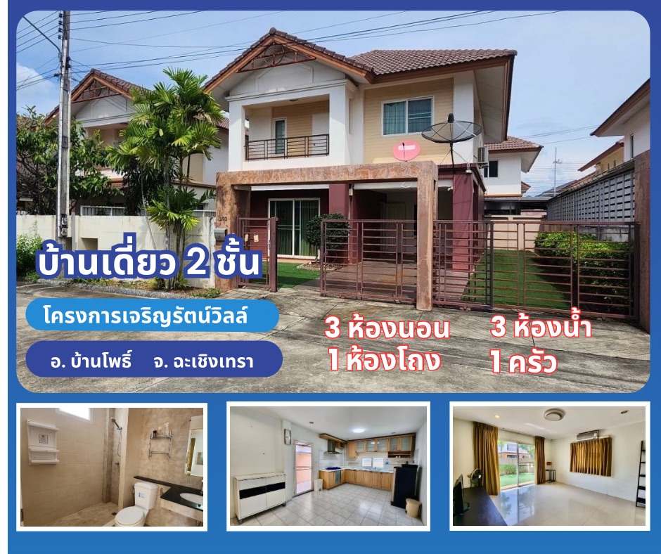 ขายบ้านเดี่ยว ฉะเชิงเทรา 54.5 ตารางวา โครงการเจริญรัตน์วิลล์ อ. บ้านโพธิ์ จ. ฉะเชิงเทรา