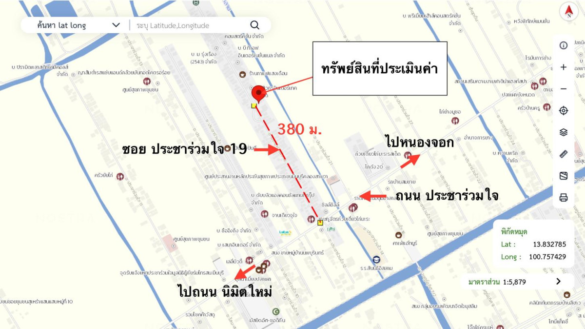 ศูนย์ข้อมูลฯ ได้ทำการตรวจสอบตำแหน่งที่ตั้งทรัพย์บนแผนที่ที่ปรากฎอยู่บนเว็บไซต์ โดยอาศัยข้อมูลจากแหล่งข้อมูลต่างๆ ที่เชื่อถือได้ เพื่อให้ตำแหน่งทรัพย์บนแผนที่ ใช้อ้างอิงท่านไปยังที่ตั้งของทรัพย์นั้นๆ โดยประมาณ ทั้งนี้ศูนย์ข้อมูลฯ ไม่สามารถยืนยันความถูกต้องของตำแหน่งทรัพย์ได้ ดังนั้น ทางศูนย์ข้อมูลฯ ขอสงวนสิทธิ์ไม่รับผิดชอบต่อข้อผิดพลาดทางตำแหน่งทรัพย์ที่เกิดขึ้นบนแผนที่ ผู้นำข้อมูลไปใช้พึงใช้วิจารณญาณและตรวจสอบตามความเหมาะสม