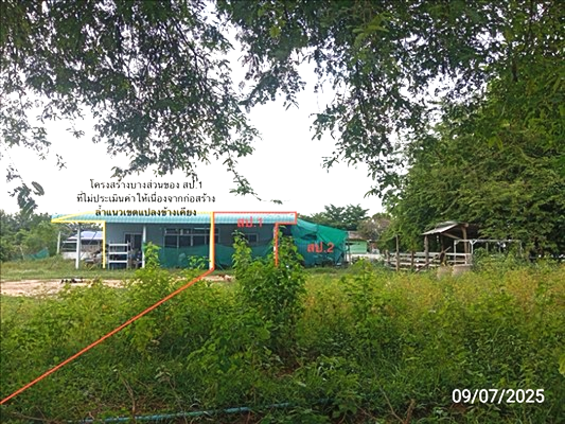 บ้านพักอาศัยชั้นเดียว อายุอาคาร 7 ปี พื้นที่ใช้สอย 42 ตร.ม. -ห้องน้ำ อายุ 7 ปี**สิ่งปลูกสร้างบางส่วนสร้างล้ำที่ดินแปลงข้างเคียง ขอให้ผู้ซื้อตรวจสอบข้อมูล และสภาพทรัพย์ก่อนการเสนอซื้อ**
