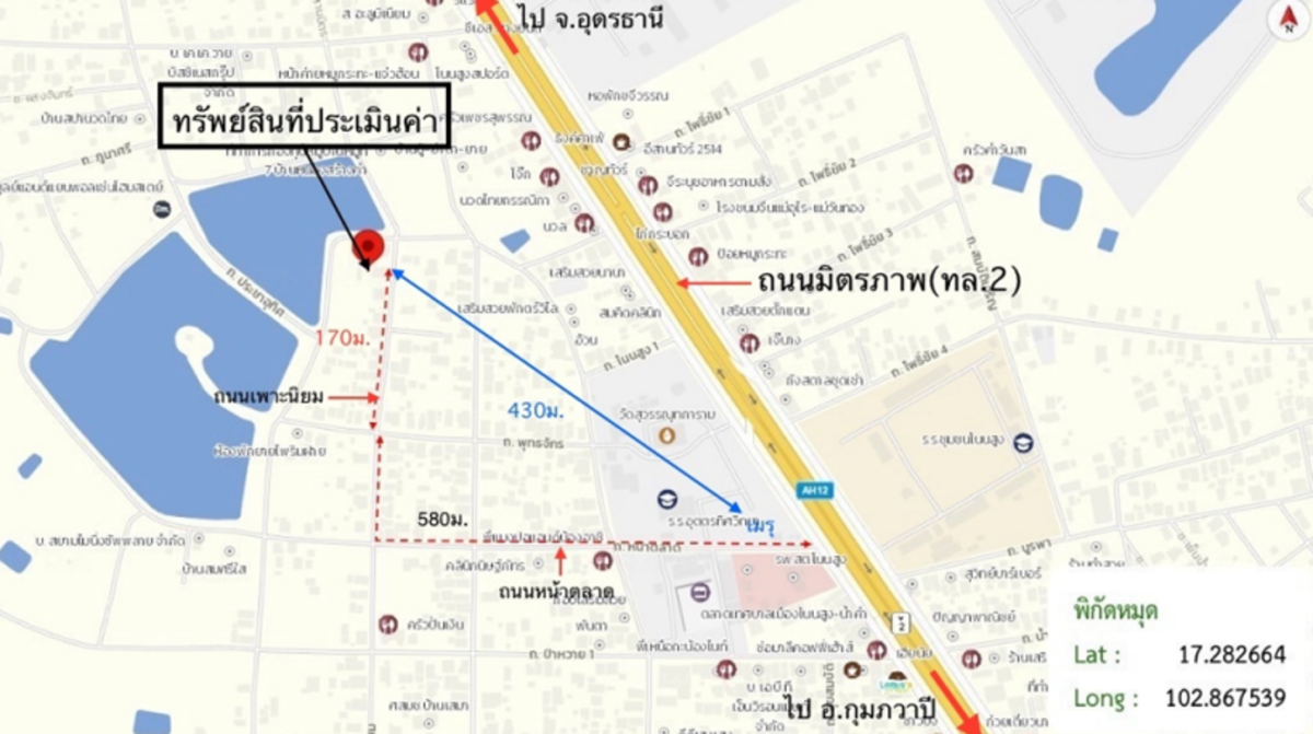 ศูนย์ข้อมูลฯ ได้ทำการตรวจสอบตำแหน่งที่ตั้งทรัพย์บนแผนที่ที่ปรากฎอยู่บนเว็บไซต์ โดยอาศัยข้อมูลจากแหล่งข้อมูลต่างๆ ที่เชื่อถือได้ เพื่อให้ตำแหน่งทรัพย์บนแผนที่ ใช้อ้างอิงท่านไปยังที่ตั้งของทรัพย์นั้นๆ โดยประมาณ ทั้งนี้ศูนย์ข้อมูลฯ ไม่สามารถยืนยันความถูกต้องของตำแหน่งทรัพย์ได้ ดังนั้น ทางศูนย์ข้อมูลฯ ขอสงวนสิทธิ์ไม่รับผิดชอบต่อข้อผิดพลาดทางตำแหน่งทรัพย์ที่เกิดขึ้นบนแผนที่ ผู้นำข้อมูลไปใช้พึงใช้วิจารณญาณและตรวจสอบตามความเหมาะสม