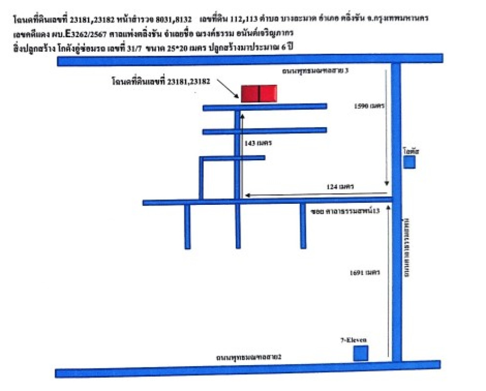 หมายเหตุ*: ขายรวมกับที่ดินโฉนดเลขที่ 23181, ราคาประเมินรวม 4,285,500.-บาท