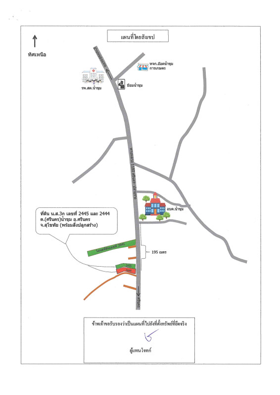 หมายเหตุ*: ขายรวมกับที่ดิน น.ส. 3 ก เลขที่ 2445, ราคาประเมินรวม 785,400.-บาท