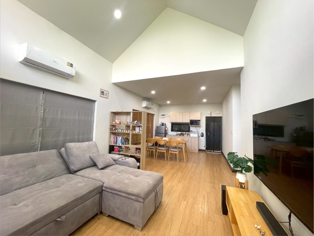 🛋️ ห้องนั่งเล่นสูงโปร่ง มีห้องครัวด้านนอก และห้องเก็บของ