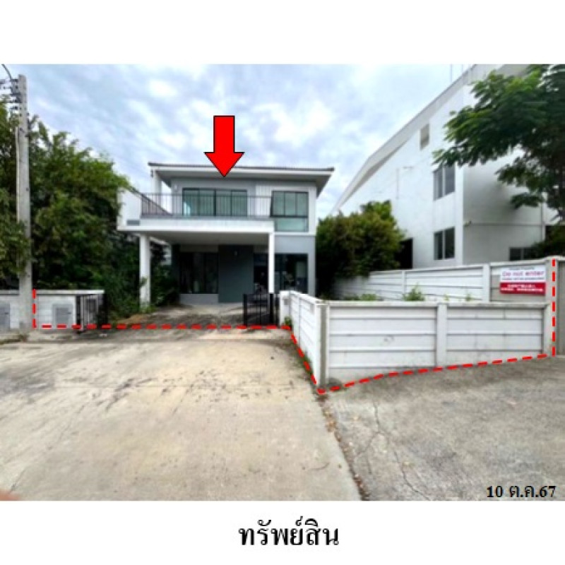 ที่ดินเป็นรูปหลายเหลี่ยม ขนาดแปลงที่ดินด้านทิศใต้ กว้างประมาณ 16 ม. (ส่วนที่ติดถนน กว้างประมาณ 12 ม.) ลึกสุดประมาณ 20.5 ม.บสส. รับโอนกรรมสิทธิ์สิ่งปลูกสร้างระบุเป็นบ้านพักอาศัยตึกสองชั้น เลขที่ 88/40ถนนผ่านหน้าทรัพย์สิน ได้แก่ ถนนภายในโครงการฯ เป็นทางในโครงการจัดสรรที่ได้รับอนุญาตแล้ว ผิวจราจร คสล. กว้างประมาณ 6 ม. เขตทางกว้างประมาณ 8 ม.