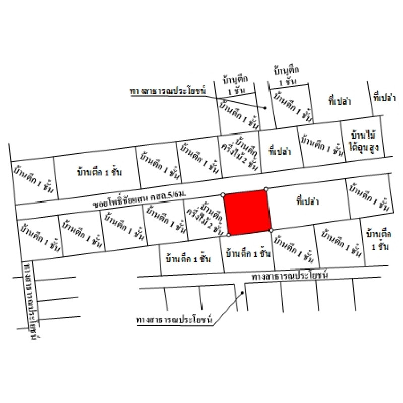 ที่ดินเป็นรูปคล้ายสี่เหลี่ยมจัตุรัส ขนาดแปลงที่ดินด้านทิศเหนือติดถนน กว้างประมาณ 16.4 ม. ลึกสุดประมาณ 17 ม.บสส. รับโอนกรรมสิทธิ์สิ่งปลูกสร้างระบุเป็นบ้านพักอาศัยตึกสองชั้น ไม่มีเลขที่, ระเบียงต่อเติมอาคารชั้นที่ 2, โรงจอดรถ ไม่มีเลขที่ ถนนผ่านหน้าทรัพย์สิน ได้แก่ ซอยโพธิ์ชัยแสน เป็นทางสาธารณประโยชน์ ผิวจราจร คสล. กว้างประมาณ 5 ม. เขตทางกว้างประมาณ 6 ม.