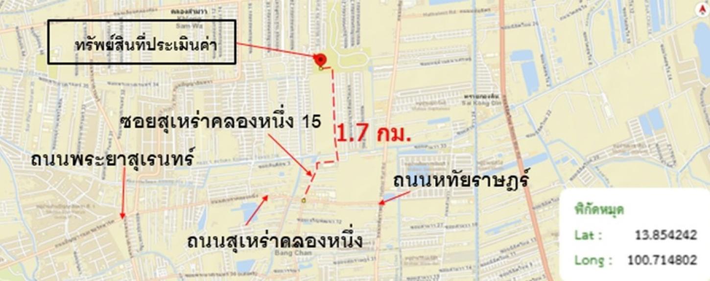 ศูนย์ข้อมูลฯ ได้ทำการตรวจสอบตำแหน่งที่ตั้งทรัพย์บนแผนที่ที่ปรากฎอยู่บนเว็บไซต์ โดยอาศัยข้อมูลจากแหล่งข้อมูลต่างๆ ที่เชื่อถือได้ เพื่อให้ตำแหน่งทรัพย์บนแผนที่ ใช้อ้างอิงท่านไปยังที่ตั้งของทรัพย์นั้นๆ โดยประมาณ ทั้งนี้ศูนย์ข้อมูลฯ ไม่สามารถยืนยันความถูกต้องของตำแหน่งทรัพย์ได้ ดังนั้น ทางศูนย์ข้อมูลฯ ขอสงวนสิทธิ์ไม่รับผิดชอบต่อข้อผิดพลาดทางตำแหน่งทรัพย์ที่เกิดขึ้นบนแผนที่ ผู้นำข้อมูลไปใช้พึงใช้วิจารณญาณและตรวจสอบตามความเหมาะสม