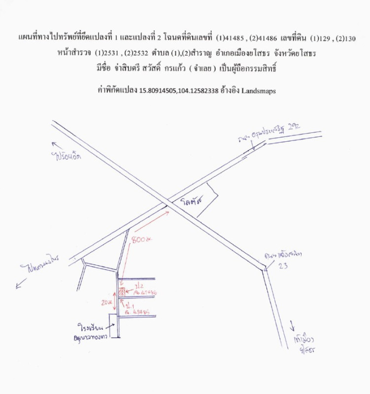 หมายเหตุ*: ขายรวม (แปลงที่ 1-2) รวม 2 แปลง, ราคาประเมินรวม 877,920.-บาท
