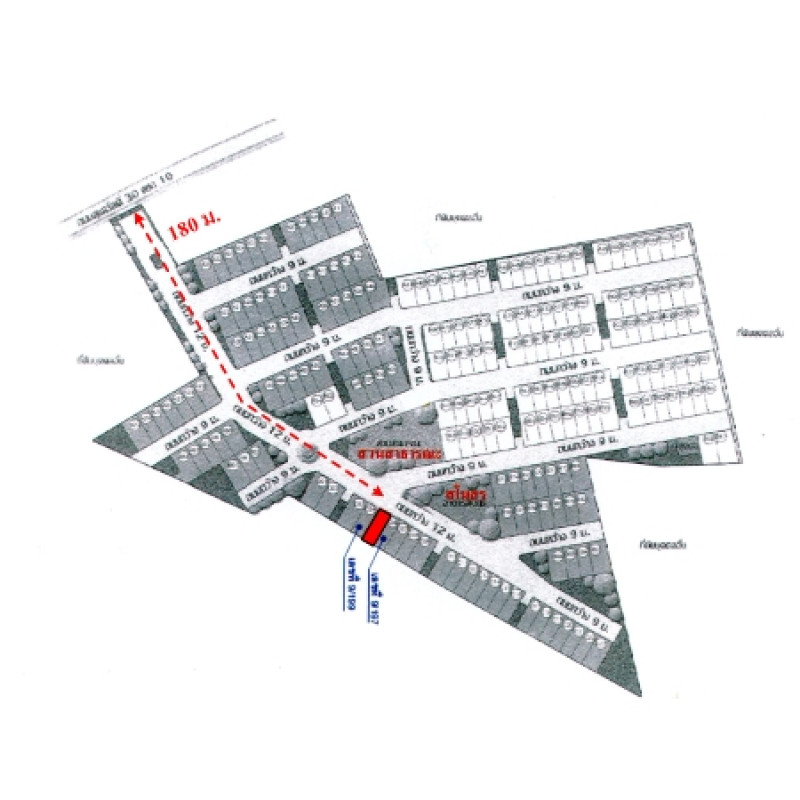 ที่ดินเป็นรูปสี่เหลี่ยมผืนผ้า ขนาดแปลงที่ดินด้านทิศเหนือติดถนน กว้างประมาณ 5.7 ม. ลึกประมาณ 15.7 ม.บสส. รับโอนกรรมสิทธิ์สิ่งปลูกสร้างระบุเป็นทาวน์เฮ้าส์ 2 ชั้น เลขที่ 9/198ถนนผ่านหน้าทรัพย์สิน ได้แก่ ถนนภายในโครงการ เป็นทางสาธารณประโยชน์ ผิวจราจร คสล. กว้างประมาณ 6 ม.