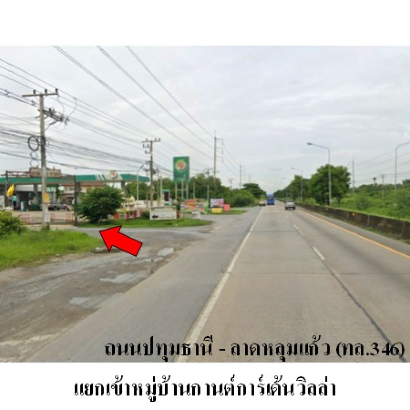 ที่ดินเป็นรูปสี่เหลี่ยมผืนผ้า ขนาดแปลงที่ดินด้านทิศเหนือติดถนน กว้างประมาณ 5 ม. ลึกประมาณ 16 ม.บสส. รับโอนกรรมสิทธิ์สิ่งปลูกสร้างระบุเป็นทาวน์เฮ้าส์ 2 ชั้น เลขที่ 92/136ถนนผ่านหน้าทรัพย์สิน ได้แก่ ซอยหมู่บ้านกานต์การ์เด้นวิลล่า เป็นทางในโครงการจัดสรรที่ได้รับอนุญาตแล้ว ผิวจราจรคอนกรีต กว้างประมาณ 6 ม. เขตทางกว้างประมาณ 8 ม.